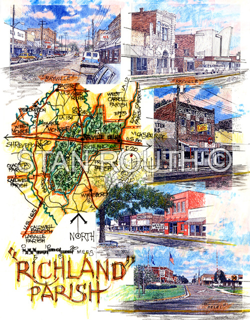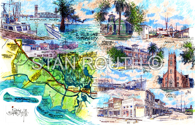 Stan has created "Poster, Collage/Montages" of all 64 Louisiana Parishes. The images listed to order from the website are 11" x 17" , but may be ordered 17" x 22" & 22" x 34" by phone - 225-256-3682. 11x17 is $50, 17 x 22 is $100, 22 x 34 is $200